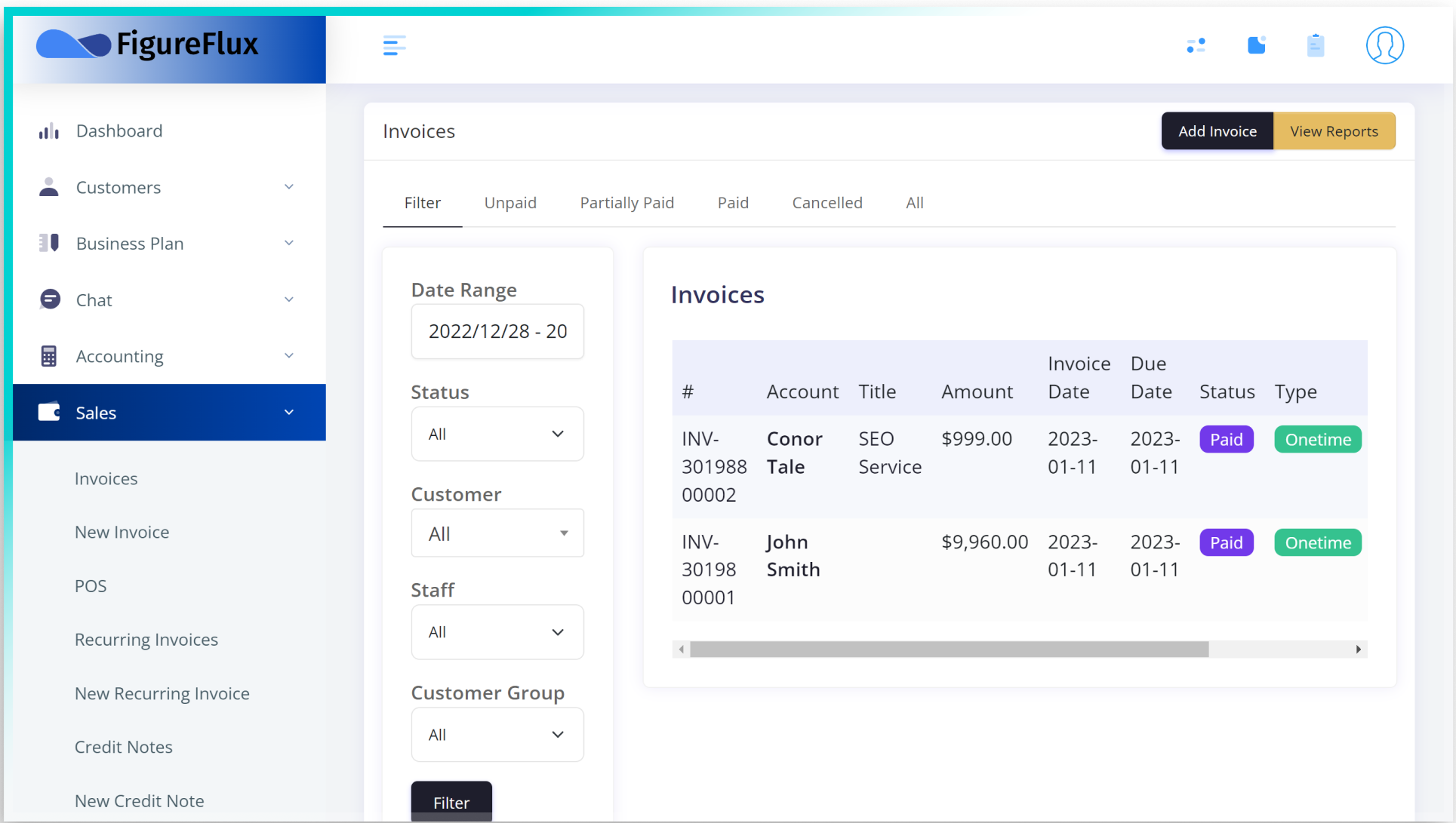 FigureFlux allows you to easily track income and expenses, manage invoices and payments, and generate real-time financial reports.